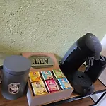 각 객실에는 부엌뿐만 아니라 발코니, 커피 및 티 메이커, 책상도 있습니다.